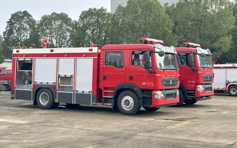 重汽豪沃8噸水罐泡沫消防車:采用國六底盤(ZZ5207TXFV471GF5),搭載MC7.34-60發(fā)動機(251Kw),罐體容積為6噸水+2噸泡沫,配備上海CB10/60消防泵和威斯特PL48W消防炮(射程≥60米水/55米泡沫),駕駛室為雙排全金屬封閉式。