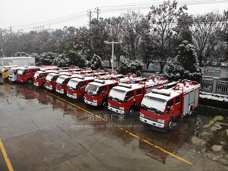 今天;我要發的是7臺小型東風水罐消防車、載水量2.5噸、配20消防泵、20消防炮、射程也可達50米;雖說噸位比較小。但是全部都是國標標準的配置、所需要的隨車消防器材也是一樣不少、這批水罐消防車是發往甘肅張掖的、算上路上跑的時間、剛好是富余幾天到交貨期;客戶那邊也給予了充分的理解、可以等雪小了之后再出發、防止路上上凍結冰不好走。