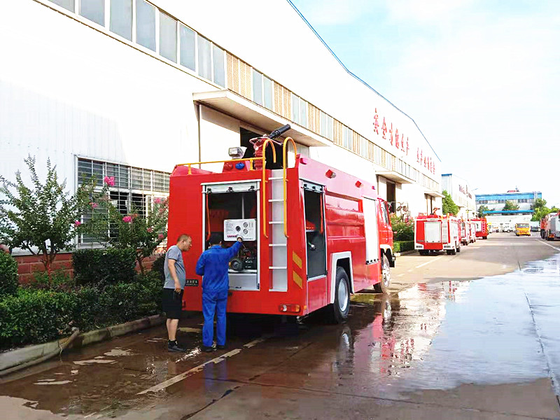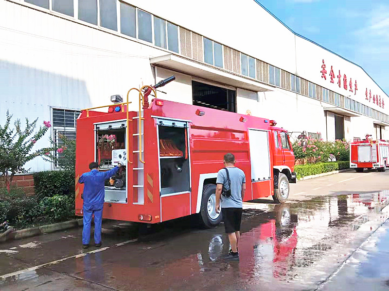 不到一個半小時便快速的完成了驗收車輛程序、這次武總訂購的是壹臺在廠區內使用的泡沫消防車、6噸的總載液量、分為水罐與泡沫兩個罐體組成、配備了40的消防炮與消防泵、有效距離可達55米、算是達到了他們的理想的預期效果。