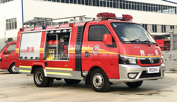 麻雀雖小五臟俱全這句話用在這款東風國六小型消防車上相當完美、別看它整車比較小、但是研發時充分的利用了它的空間、使得全車的配備比大型消防車都要高端的多、例如:消防服全套、空呼全套、防毒面罩、破拆工具全套、手抬吸水泵、升降照明系統、救援繩索、干粉滅火器、自動滅火球、5米消防拉梯等等;