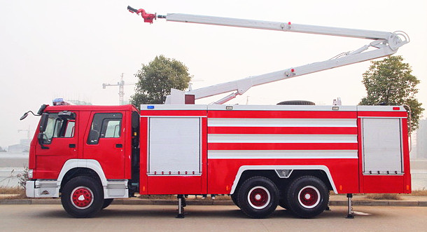舉高噴射消防車:簡稱高噴消防車、是一款非常多功能的救援類車型,由于普通水罐消防車、泡沫消防車只能從原地射水進(jìn)行滅火,在有些比較復(fù)雜的地方比較局限,而高噴的作用是可以將消防炮高高的舉起,可以精確的對著火點(diǎn)進(jìn)行快速的滅火,使得火情可以得到有效的撲滅。所以一般大型消防隊(duì)都有配備的!它是由折疊伸縮臂結(jié)構(gòu)、電動遙控消防炮、罐體及二類底盤組成,臂架為基本臂(二節(jié)臂、三節(jié)臂、四節(jié)臂),臂端安裝進(jìn)口的電子遙控消防炮,消防隊(duì)員通過電動遙控遙控消防炮在高空中從多個角度靈活地噴霧、噴水或者噴射泡沫進(jìn)行撲救一般火災(zāi)。