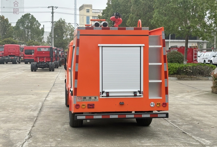 標配1.92立方米不銹鋼水罐,載水量達1.8噸,搭配高壓水槍及多級增壓水泵,噴射距離超50米。
